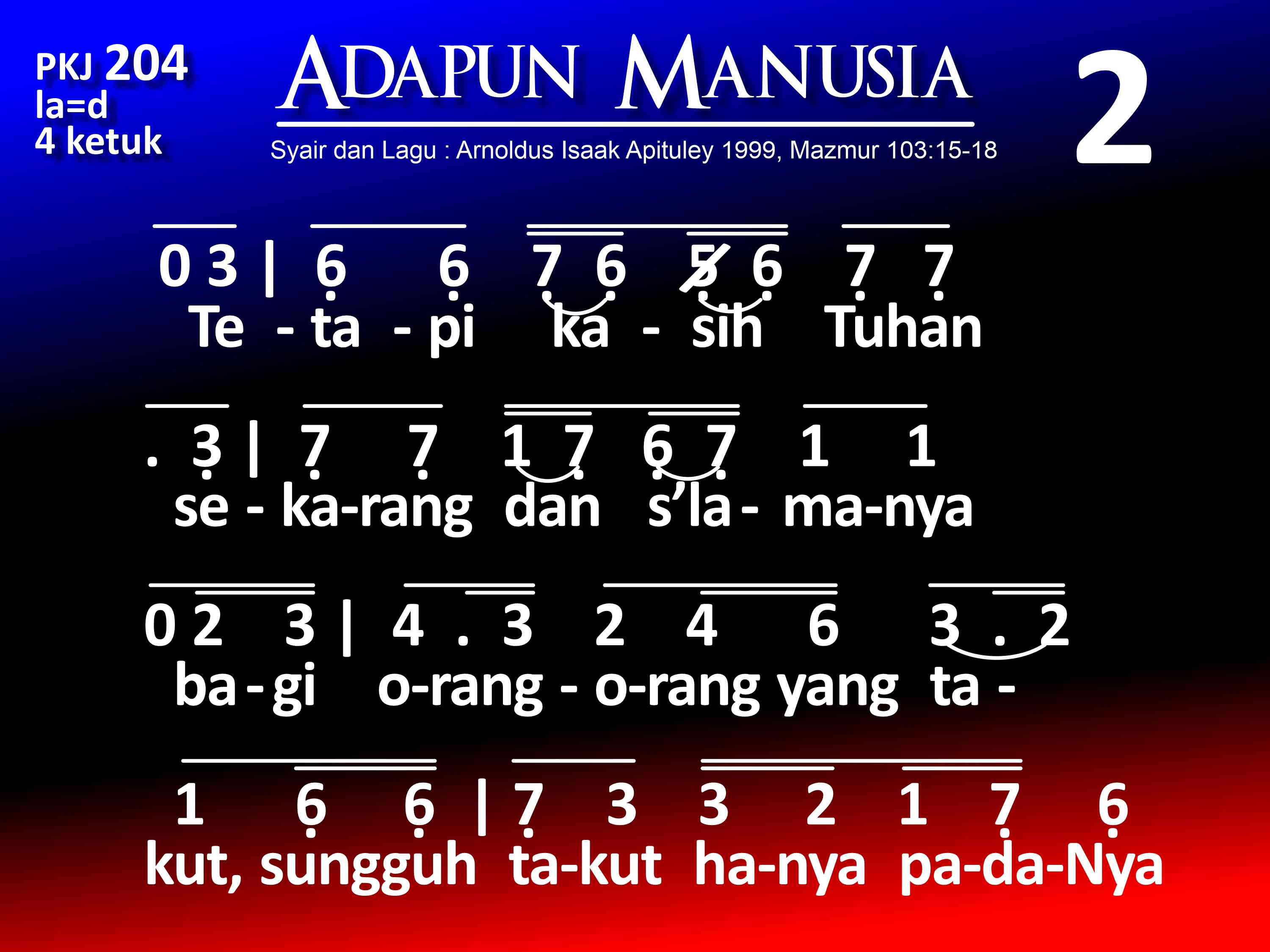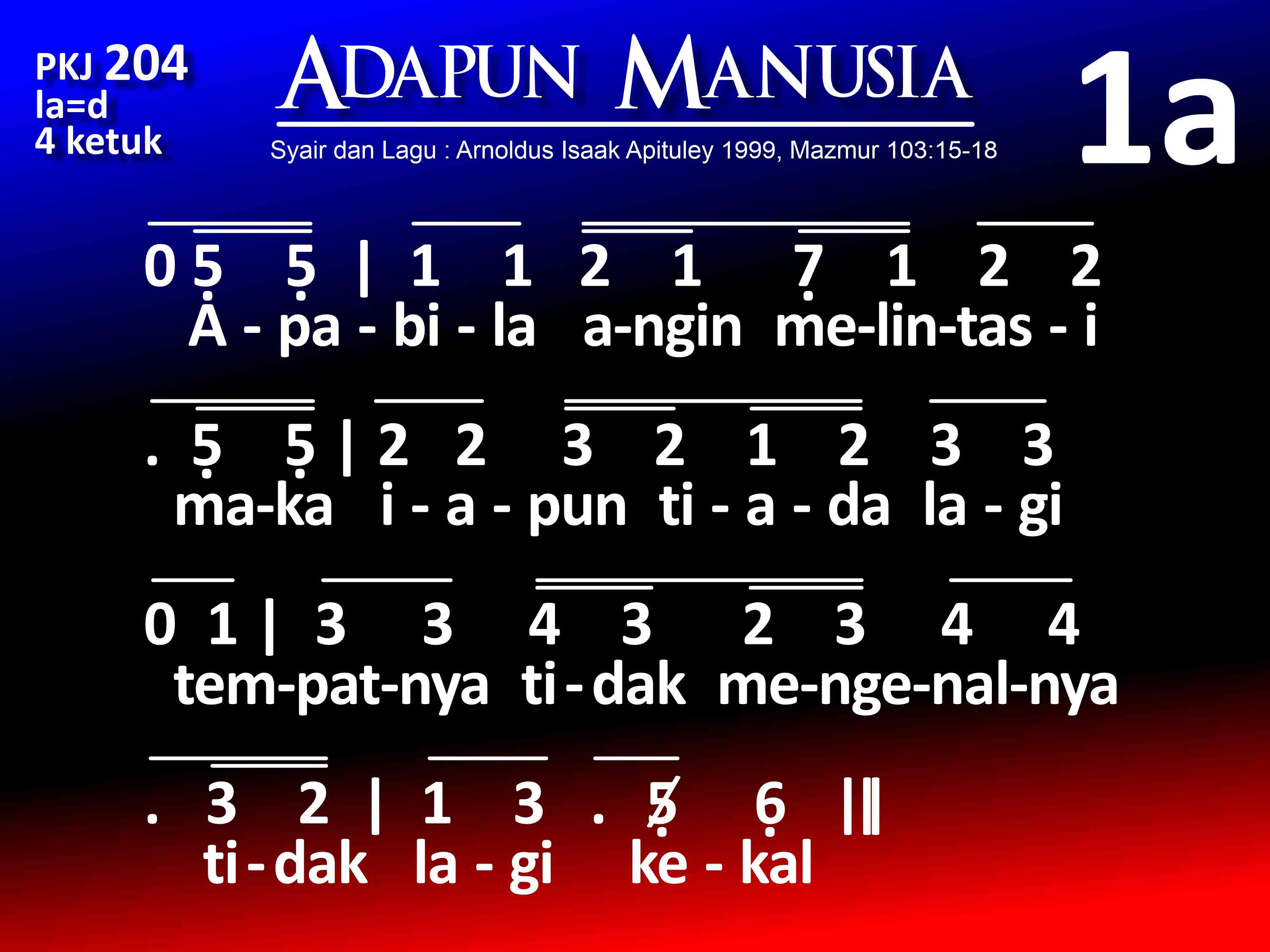 Syair dan lagu: Arnoldus Isaak Apituley, 1999, berdasarkan Mazmur 103:15-18